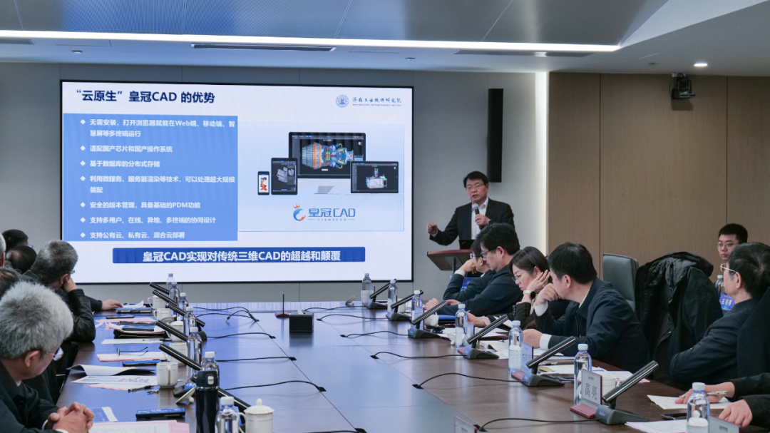 济南工业软件研究院院长梅敬成博士就“皇冠CAD(CrownCAD)内核和产品研发成果”作专题汇报。